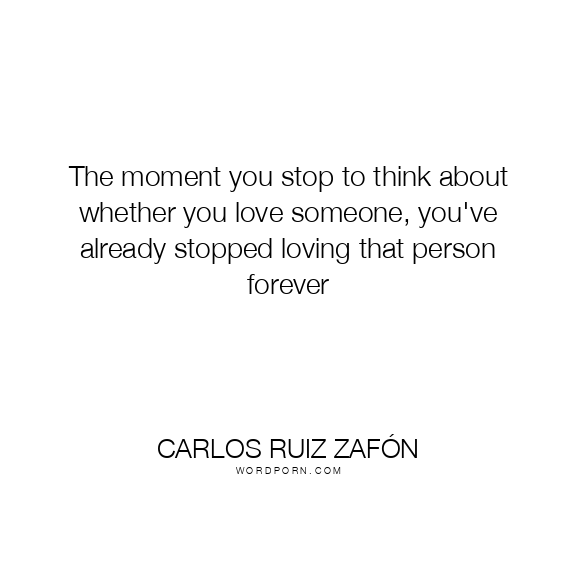 The moment you stop to think about whether you love someone, you've already stopped loving that person forever