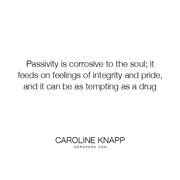 Passivity is corrosive to the soul; it feeds on feelings of integrity and pride, and it can be as tempting as a drug