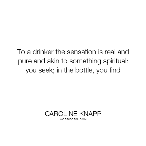 To a drinker the sensation is real and pure and akin to something spiritual: you seek; in the bottle, you find