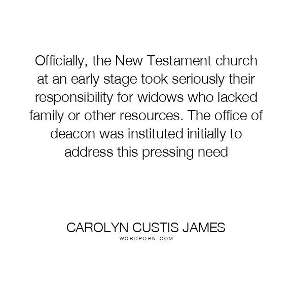 Officially, the New Testament church at an early stage took seriously their responsibility for widows who lacked family or other resources. The office of deacon was instituted initially to address this pressing need