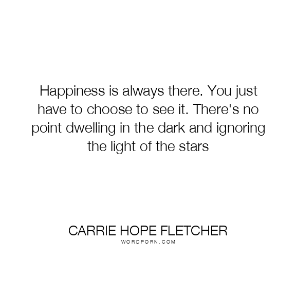 Happiness is always there. You just have to choose to see it. There's no point dwelling in the dark and ignoring the light of the stars