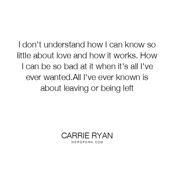 I don't understand how I can know so little about love and how it works. How I can be so bad at it when it's all I've ever wanted.All I've ever known is about leaving or being left