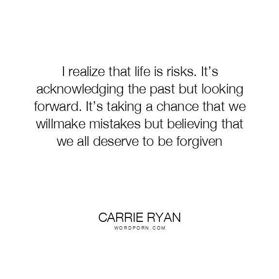 I realize that life is risks. It’s acknowledging the past but looking forward. It’s taking a chance that we willmake mistakes but believing that we all deserve to be forgiven