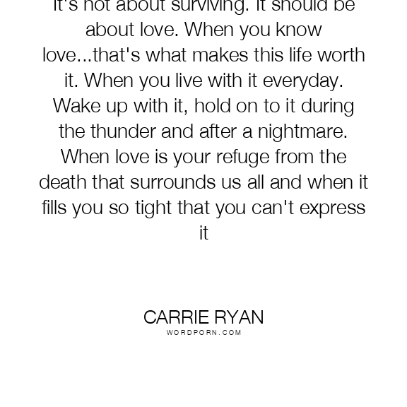 It's not about surviving. It should be about love. When you know love...that's what makes this life worth it. When you live with it everyday. Wake up with it, hold on to it during the thunder and after a nightmare. When love is your refuge from the death that surrounds us all and when it fills you so tight that you can't express it