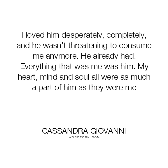 I loved him desperately, completely, and he wasn’t threatening to consume me anymore. He already had. Everything that was me was him. My heart, mind and soul all were as much a part of him as they were me