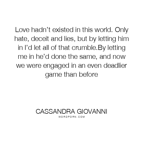 Love hadn’t existed in this world. Only hate, deceit and lies, but by letting him in I’d let all of that crumble.By letting me in he’d done the same, and now we were engaged in an even deadlier game than before