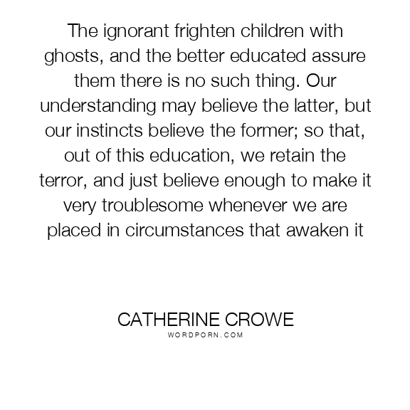 The ignorant frighten children with ghosts, and the better educated assure them there is no such thing. Our understanding may believe the latter, but our instincts believe the former; so that, out of this education, we retain the terror, and just believe enough to make it very troublesome whenever we are placed in circumstances that awaken it