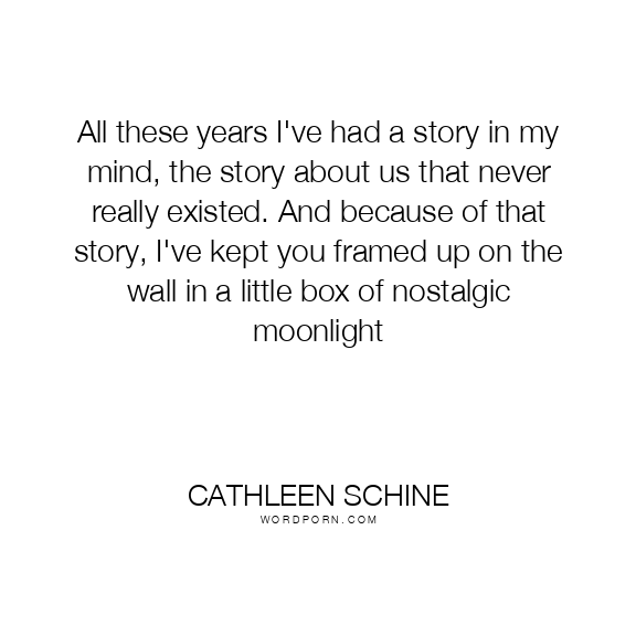 All these years I've had a story in my mind, the story about us that never really existed. And because of that story, I've kept you framed up on the wall in a little box of nostalgic moonlight