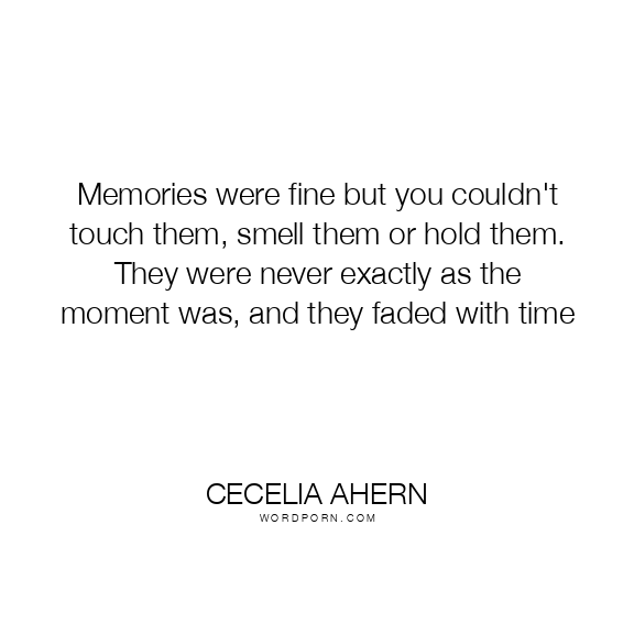 Memories were fine but you couldn't touch them, smell them or hold them. They were never exactly as the moment was, and they faded with time