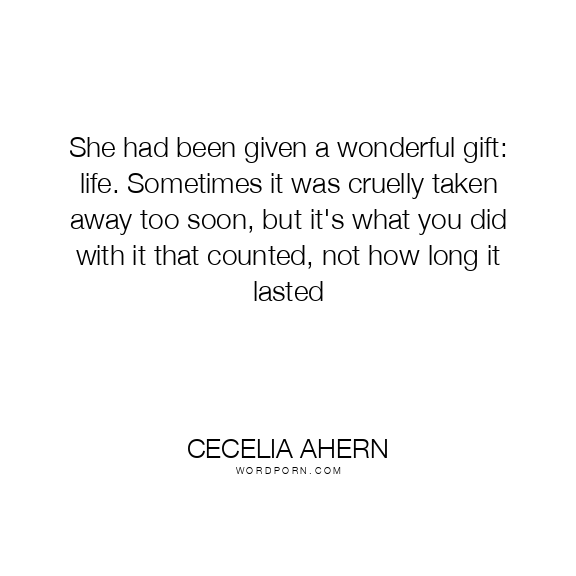 She had been given a wonderful gift: life. Sometimes it was cruelly taken away too soon, but it's what you did with it that counted, not how long it lasted