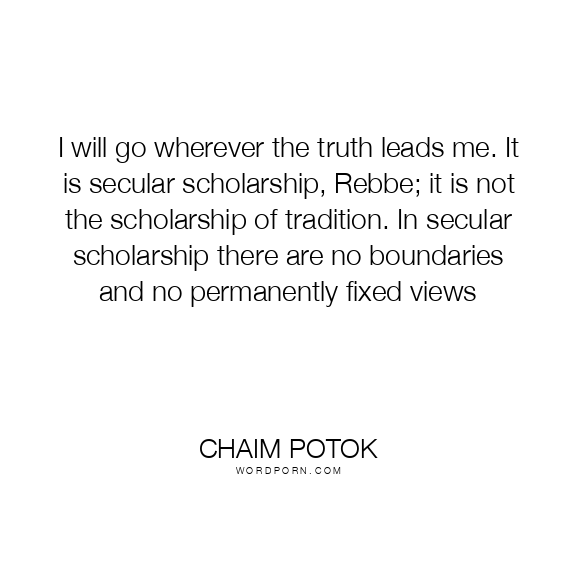 I will go wherever the truth leads me. It is secular scholarship, Rebbe; it is not the scholarship of tradition. In secular scholarship there are no boundaries and no permanently fixed views