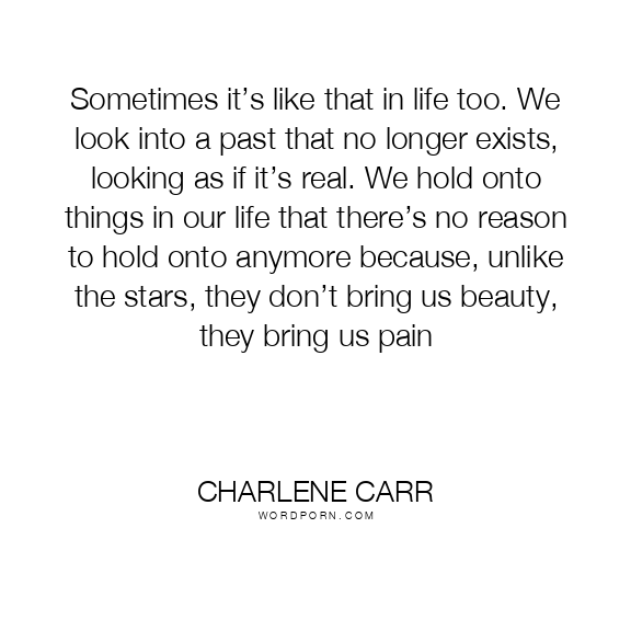 Sometimes it’s like that in life too. We look into a past that no longer exists, looking as if it’s real. We hold onto things in our life that there’s no reason to hold onto anymore because, unlike the stars, they don’t bring us beauty, they bring us pain