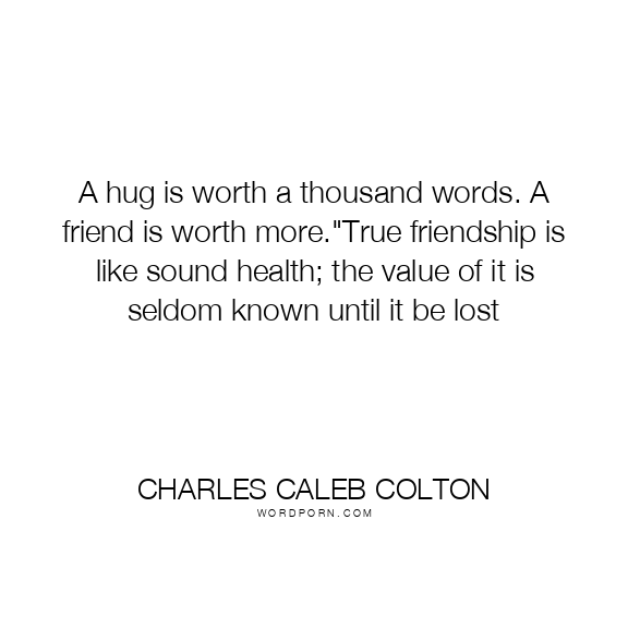 A hug is worth a thousand words. A friend is worth more."True friendship is like sound health; the value of it is seldom known until it be lost