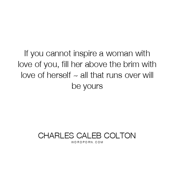 If you cannot inspire a woman with love of you, fill her above the brim with love of herself ~ all that runs over will be yours