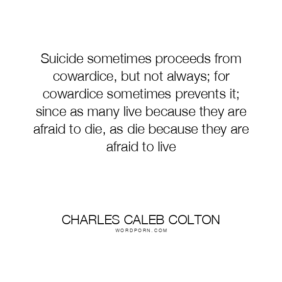 Suicide sometimes proceeds from cowardice, but not always; for cowardice sometimes prevents it; since as many live because they are afraid to die, as die because they are afraid to live