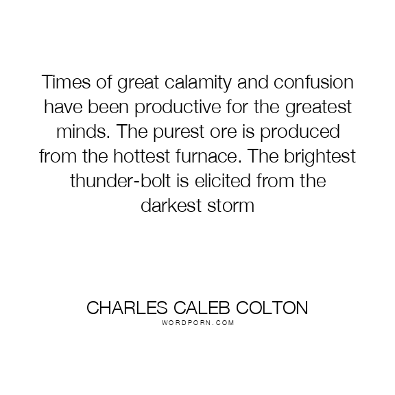 Times of great calamity and confusion have been productive for the greatest minds. The purest ore is produced from the hottest furnace. The brightest thunder-bolt is elicited from the darkest storm