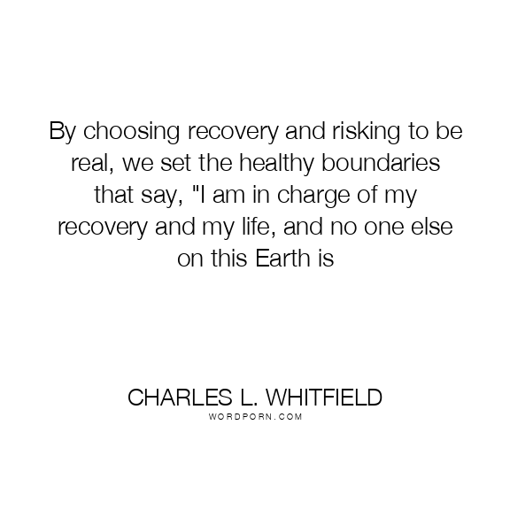 By choosing recovery and risking to be real, we set the healthy boundaries that say, "I am in charge of my recovery and my life, and no one else on this Earth is