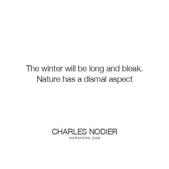 The winter will be long and bleak. Nature has a dismal aspect
