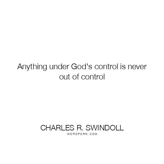 Anything under God's control is never out of control