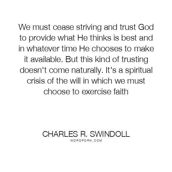 We must cease striving and trust God to provide what He thinks is best and in whatever time He chooses to make it available. But this kind of trusting doesn't come naturally. It's a spiritual crisis of the will in which we must choose to exercise faith