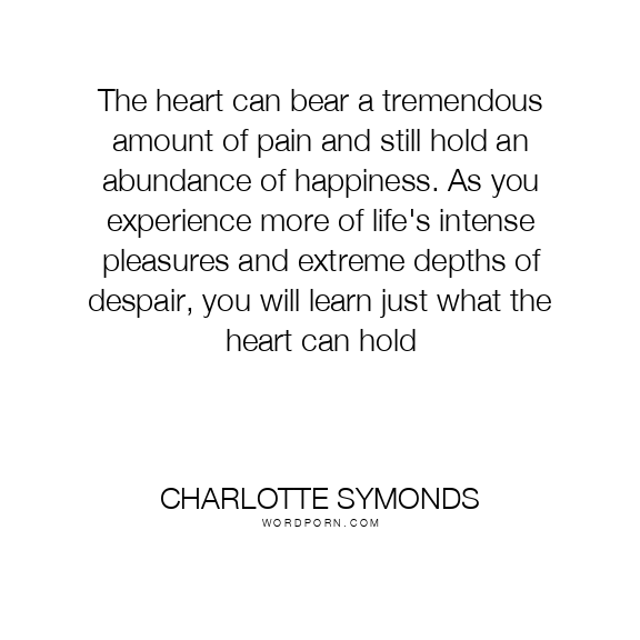 The heart can bear a tremendous amount of pain and still hold an abundance of happiness. As you experience more of life's intense pleasures and extreme depths of despair, you will learn just what the heart can hold