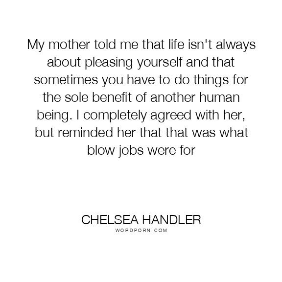 My mother told me that life isn't always about pleasing yourself and that sometimes you have to do things for the sole benefit of another human being. I completely agreed with her, but reminded her that that was what blow jobs were for