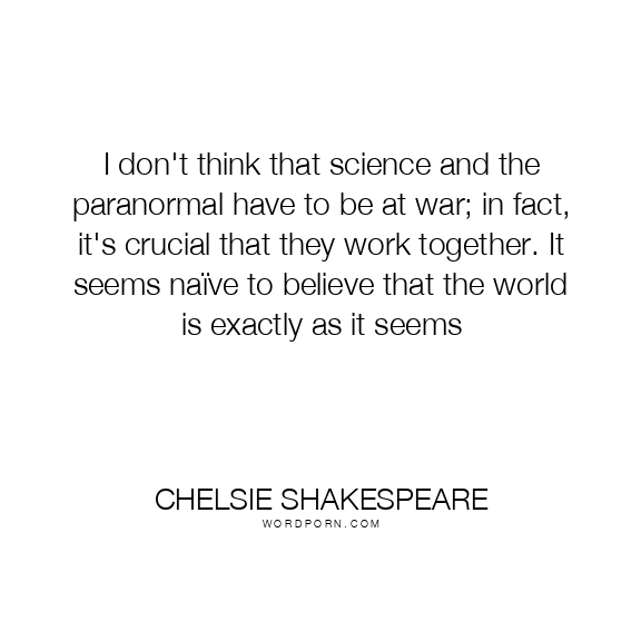 I don't think that science and the paranormal have to be at war; in fact, it's crucial that they work together. It seems naïve to believe that the world is exactly as it seems