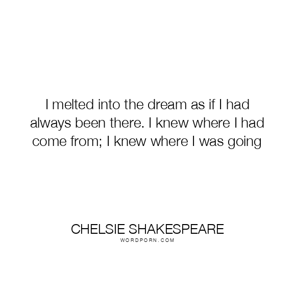 I melted into the dream as if I had always been there. I knew where I had come from; I knew where I was going
