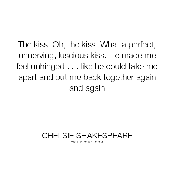 The kiss. Oh, the kiss. What a perfect, unnerving, luscious kiss. He made me feel unhinged . . . like he could take me apart and put me back together again and again