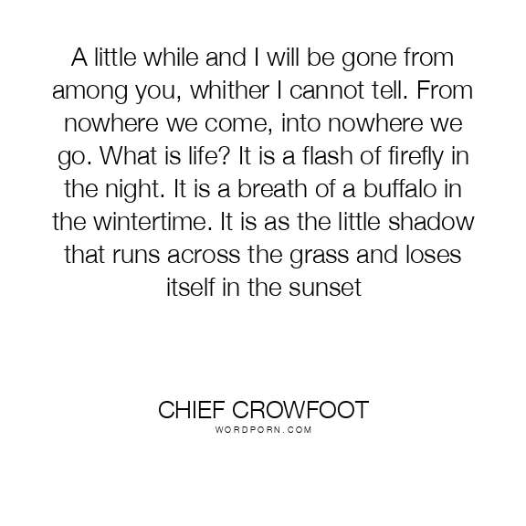 A little while and I will be gone from among you, whither I cannot tell. From nowhere we come, into nowhere we go. What is life? It is a flash of firefly in the night. It is a breath of a buffalo in the wintertime. It is as the little shadow that runs across the grass and loses itself in the sunset