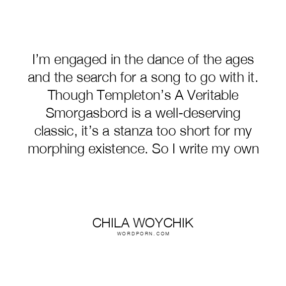 I’m engaged in the dance of the ages and the search for a song to go with it. Though Templeton’s A Veritable Smorgasbord is a well-deserving classic, it’s a stanza too short for my morphing existence. So I write my own