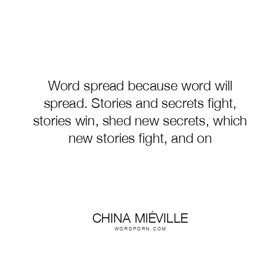 Word spread because word will spread. Stories and secrets fight, stories win, shed new secrets, which new stories fight, and on