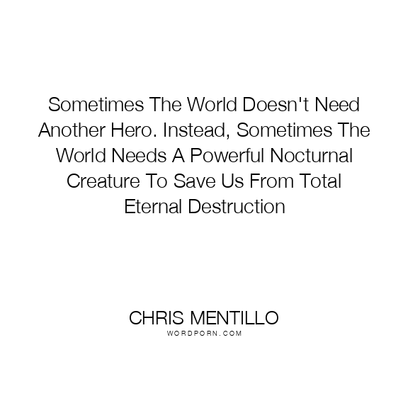 Sometimes The World Doesn't Need Another Hero. Instead, Sometimes The World Needs A Powerful Nocturnal Creature To Save Us From Total Eternal Destruction