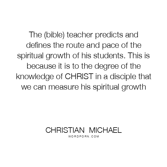 The (bible) teacher predicts and defines the route and pace of the spiritual growth of his students. This is because it is to the degree of the knowledge of CHRIST in a disciple that we can measure his spiritual growth