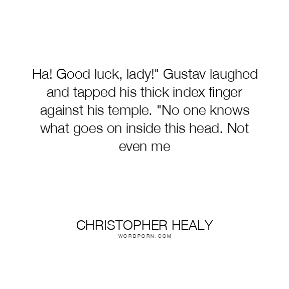 Ha! Good luck, lady!" Gustav laughed and tapped his thick index finger against his temple. "No one knows what goes on inside this head. Not even me