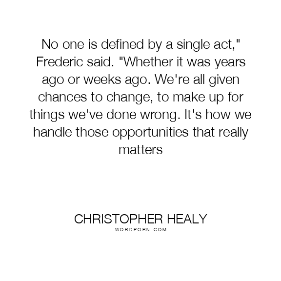 No one is defined by a single act," Frederic said. "Whether it was years ago or weeks ago. We're all given chances to change, to make up for things we've done wrong. It's how we handle those opportunities that really matters