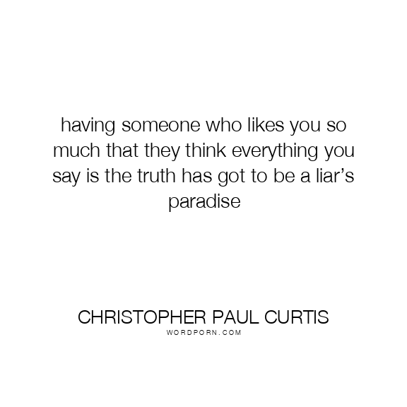 having someone who likes you so much that they think everything you say is the truth has got to be a liar’s paradise