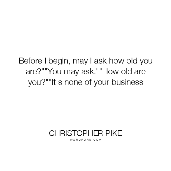 Before I begin, may I ask how old you are?""You may ask.""How old are you?""It's none of your business