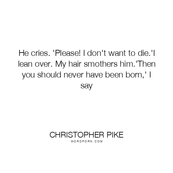 He cries. 'Please! I don't want to die.'I lean over. My hair smothers him.'Then you should never have been born,' I say