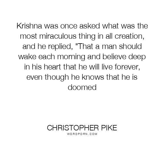 Krishna was once asked what was the most miraculous thing in all creation, and he replied, "That a man should wake each morning and believe deep in his heart that he will live forever, even though he knows that he is doomed