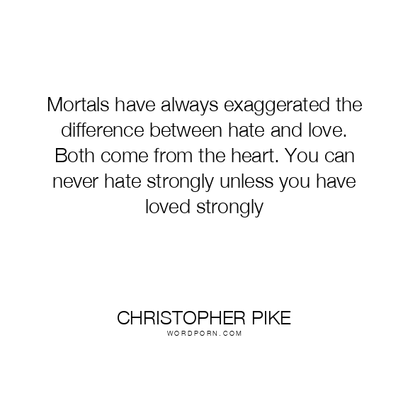 Mortals have always exaggerated the difference between hate and love. Both come from the heart. You can never hate strongly unless you have loved strongly
