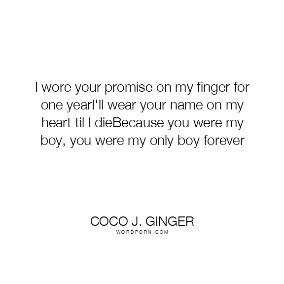 I wore your promise on my finger for one yearI'll wear your name on my heart til I dieBecause you were my boy, you were my only boy forever