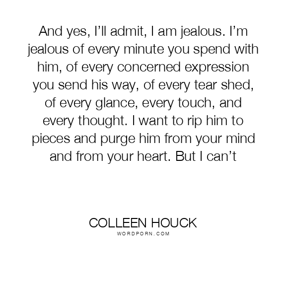 And yes, I’ll admit, I am jealous. I’m jealous of every minute you spend with him, of every concerned expression you send his way, of every tear shed, of every glance, every touch, and every thought. I want to rip him to pieces and purge him from your mind and from your heart. But I can’t