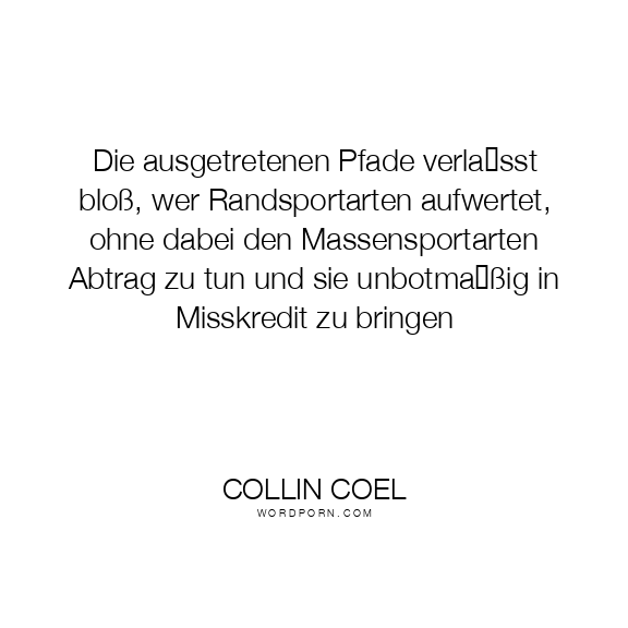 Die ausgetretenen Pfade verlässt bloß, wer Randsportarten aufwertet, ohne dabei den Massensportarten Abtrag zu tun und sie unbotmäßig in Misskredit zu bringen