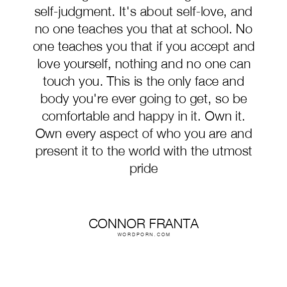 Forget about self-image and self-judgment. It's about self-love, and no one teaches you that at school. No one teaches you that if you accept and love yourself, nothing and no one can touch you. This is the only face and body you're ever going to get, so be comfortable and happy in it. Own it. Own every aspect of who you are and present it to the world with the utmost pride