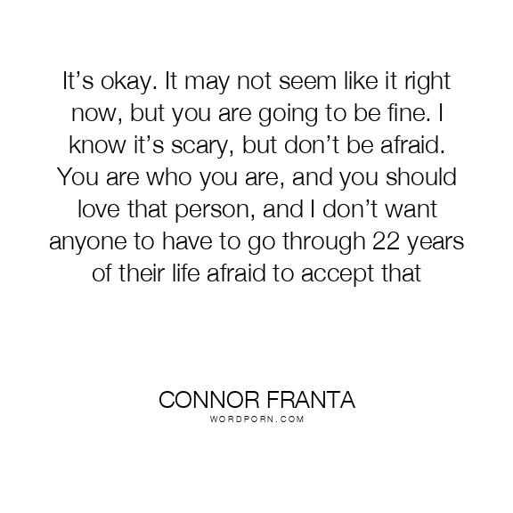 It’s okay. It may not seem like it right now, but you are going to be fine. I know it’s scary, but don’t be afraid. You are who you are, and you should love that person, and I don’t want anyone to have to go through 22 years of their life afraid to accept that