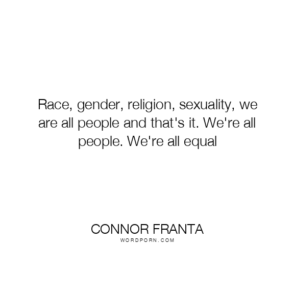 Race, gender, religion, sexuality, we are all people and that's it. We're all people. We're all equal