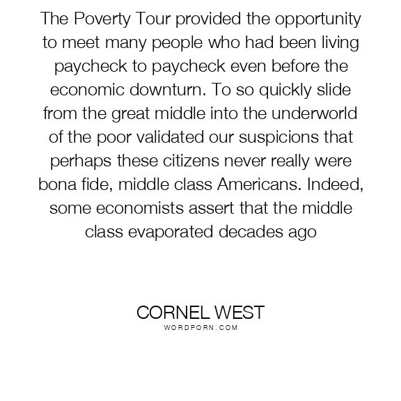 The Poverty Tour provided the opportunity to meet many people who had been living paycheck to paycheck even before the economic downturn. To so quickly slide from the great middle into the underworld of the poor validated our suspicions that perhaps these citizens never really were bona fide, middle class Americans. Indeed, some economists assert that the middle class evaporated decades ago