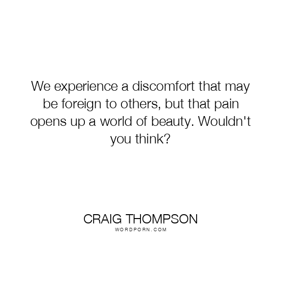 We experience a discomfort that may be foreign to others, but that pain opens up a world of beauty. Wouldn't you think?