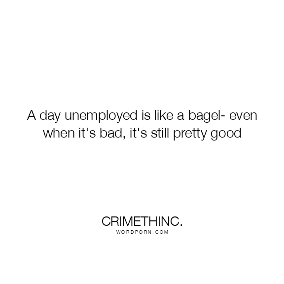 A day unemployed is like a bagel- even when it's bad, it's still pretty good